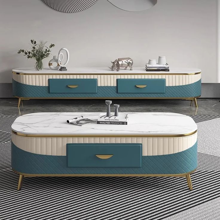 - Functional Storage: TV unit includes shelves and cabinets; table features drawers and open display space.